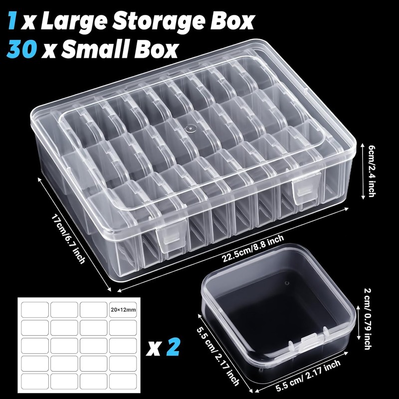 - Large and Small Boxes: with an outer box of size 22.5 x 17 x 6 cm and 30 inner boxes of size 5.5 x 5.5 x 2 cm, this storage box provides plenty of space for your small items.