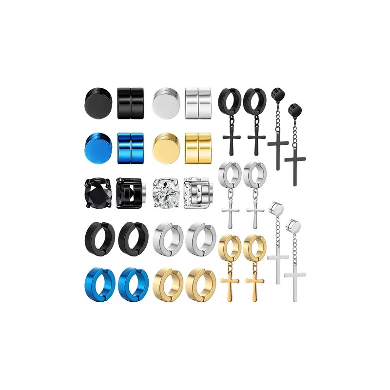 30 Piezas Aretes Falsos Piercing Hombre Imán Acero Cruz