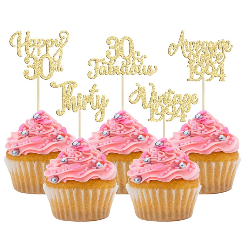 - Uso: Son perfectos para fiestas temáticas clásico de 1994, fiestas temáticas de 30 cumpleaños, fiestas temáticas de 30 aniversario de boda, fiestas temáticas de vítores a 30 años, decoraciones de cupcakes, que hacen que el cupcake se vea más sabroso y atractivo.