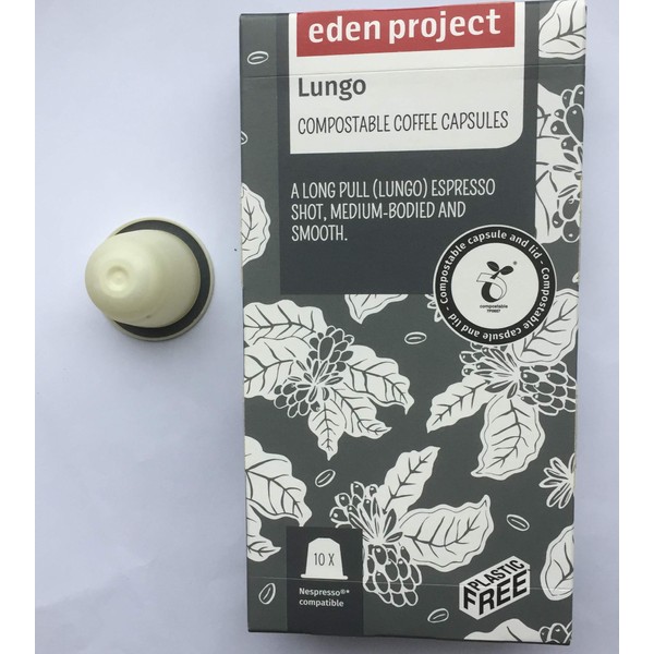 30 PLASTIC FREE Eden Project 100% Home Compostable Lungo Nespresso Compatible Capsules