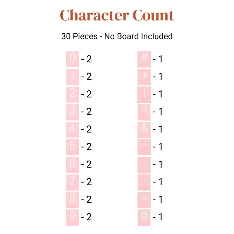 30 Premium Numbers and Symbols for Tile Board - No Letters and Letter Board - Wooden Numbers for School and Teaching Letter Board - Tile Crossword Pieces by Stiles, Pink