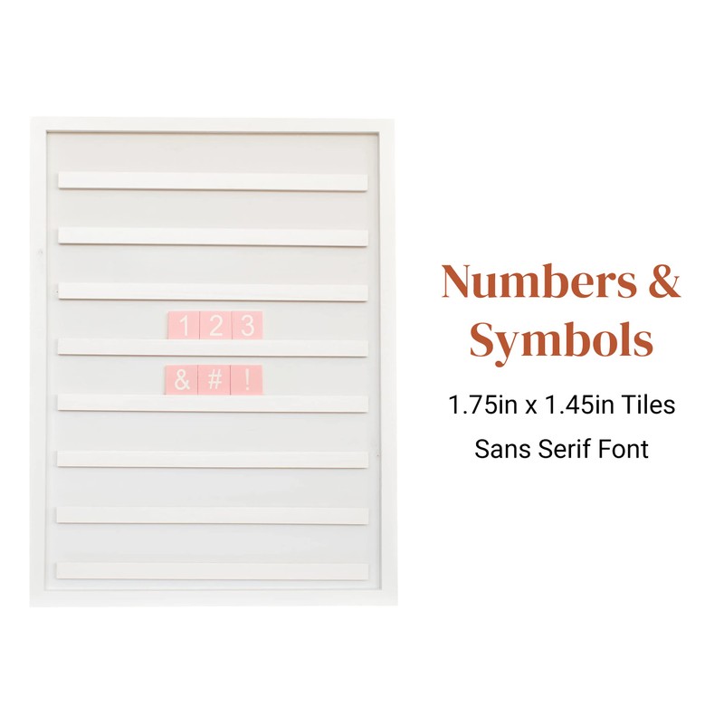 The Stiles Premium Numbers and Symbols Tile Set is made from solid wood and coated with premium paint for a lasting finish and eye-catching look. The 30 interchangeable numbers and symbols are a great addition to our Premium Tile Letter Board Set to ensure you have the pieces you need to organize your reminders, to-do lists, or daily affirmations. Available in Gold, Baby Blue, and Baby Pink, you can explore your creativity in decorating during themed events like pregnancy announcements, weddings, or birthdays. The wooden tiles can also be used for crafting ornaments or personalizing gifts. The numbers and symbols measure 1.45 inches wide, 1.75 inches tall, and 0.24 inches thick and include a burlap bag for easy organization. The Stiles Premium Number and Symbol Tile Set consists of 30 tiles in fun colors so you can explore your creativity while decorating your tile boards for special events.