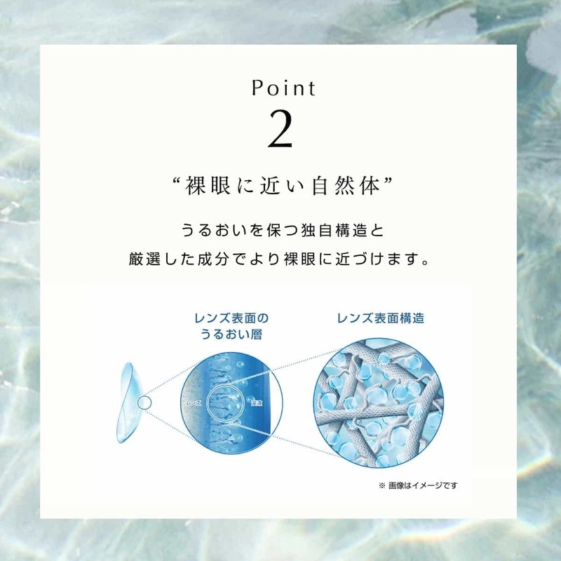 - ベースカーブ:8.8mm|レンズ直径:14.1mm|中心厚:0.08mm(-3.00Dの場合)|含水率:47.0%