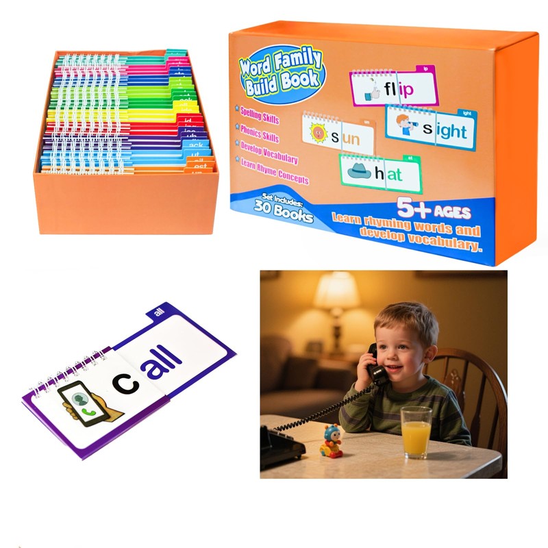 【Rhyming Flip Books & Word Family Flash Cards】: A selection of 30 rhyming flip books, combined with word family flash cards, helps children easily master language rhythm and vocabulary associations while stimulating their interest in reading.