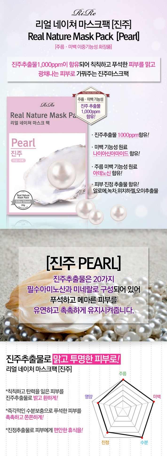 리르 네이처 진주 마스크팩 30매 세트 Rir Nature Pearl Mask Pack 30 Sheets Set