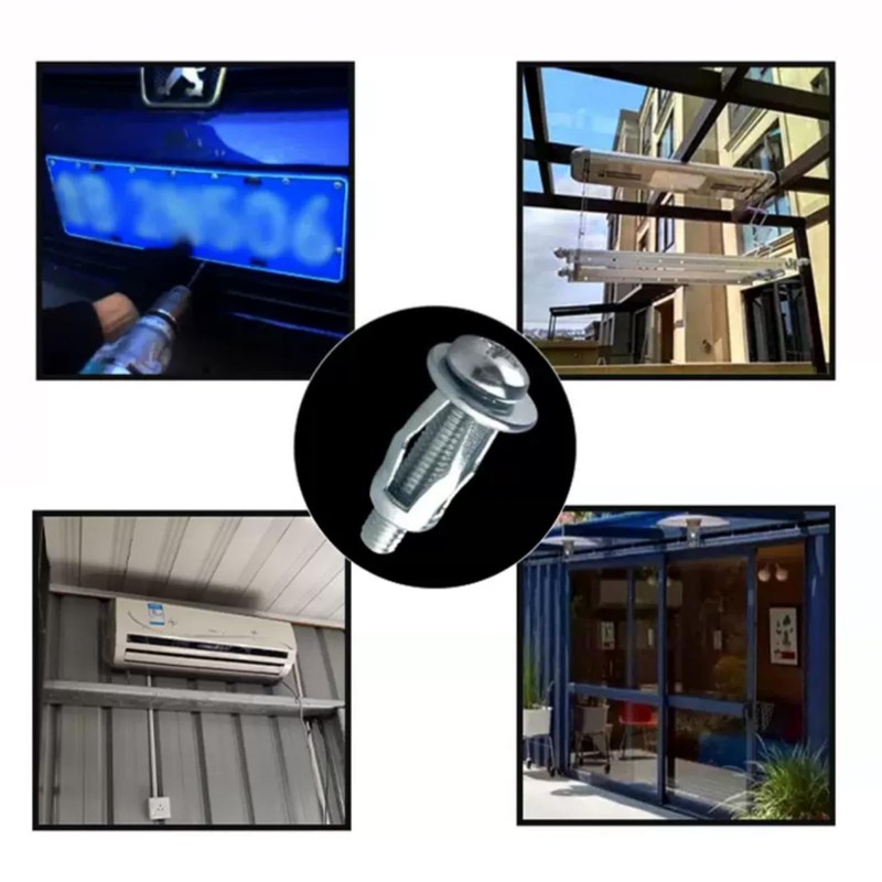 - Easy to Install:Drill a hole that the same diameter as the endof the metal fixing,Slide the fixing into the hole, adjust the screwin the fixing,Attach the setting tool, squeeze the settingtool to compress the back of the fixing, removethe screw.Thread the screw through your item to be fixedto the door the tighten up with a serewdriver.