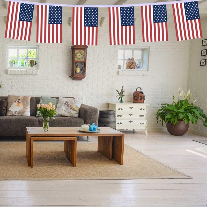 30 Stück USA Flaggenkette Fahnen, 10 Meter Amerikaner Rechteck Seilfahnen, dekorative Banner verwendet, um Innenhöfe zu schmücken String U.S.A