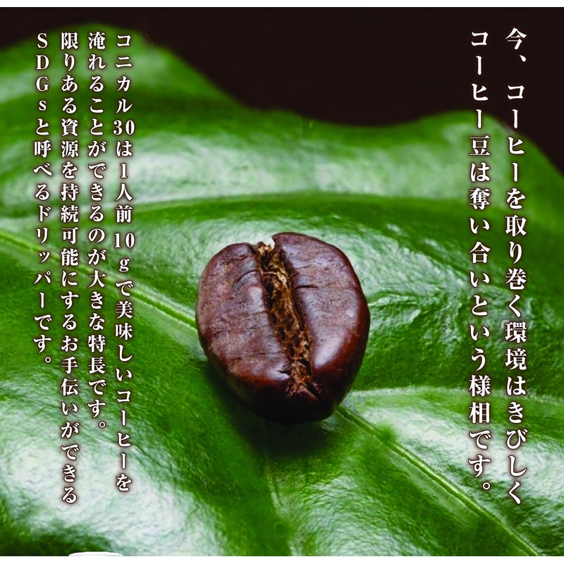 - 【こだわりの30°】 この30°という角度によりドリッパー内のコーヒー層が深くなるため、他の円錐形ドリッパーよりも、1杯分でコクのあるコーヒーを抽出することができます。