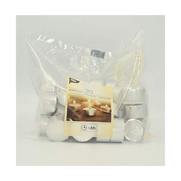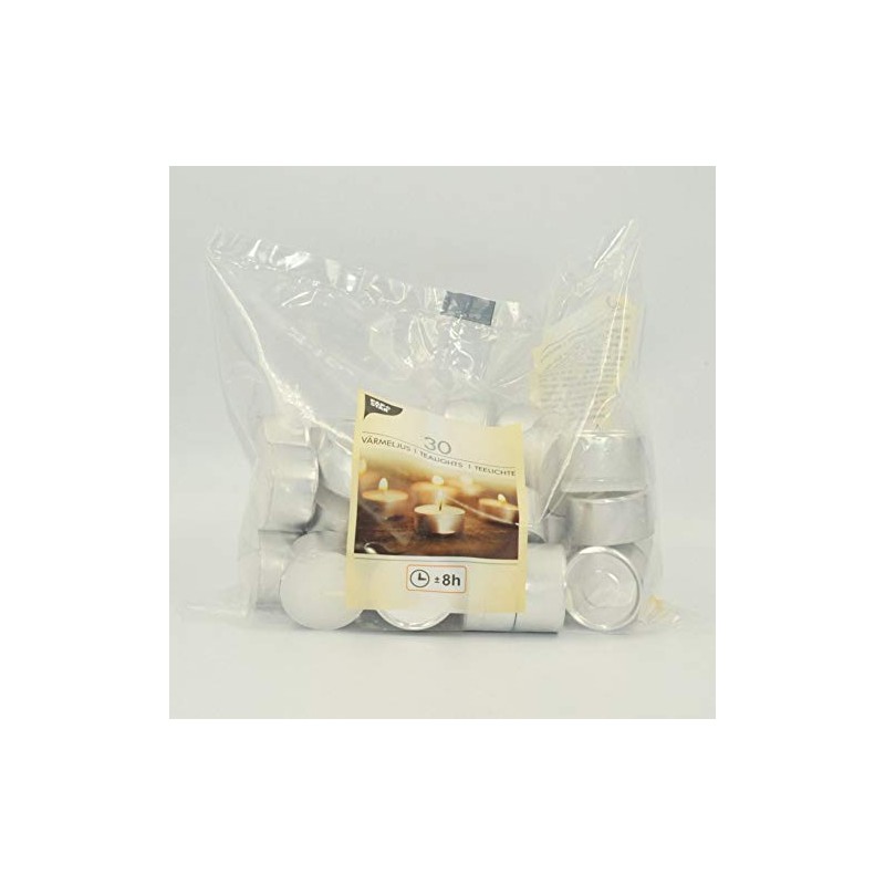 30 Tea Lights Diameter 39 mm 22 mm White with Long Burning Time 8 Hours 1 x Pack of 30