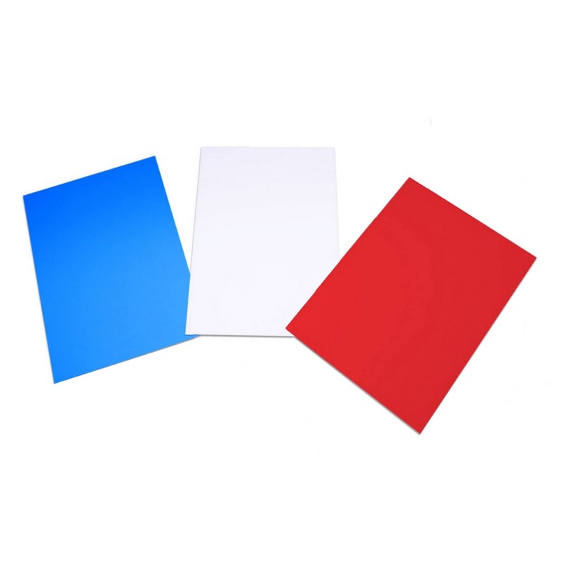 - 10 Sheets Of Each Colour: Blue, Red & White