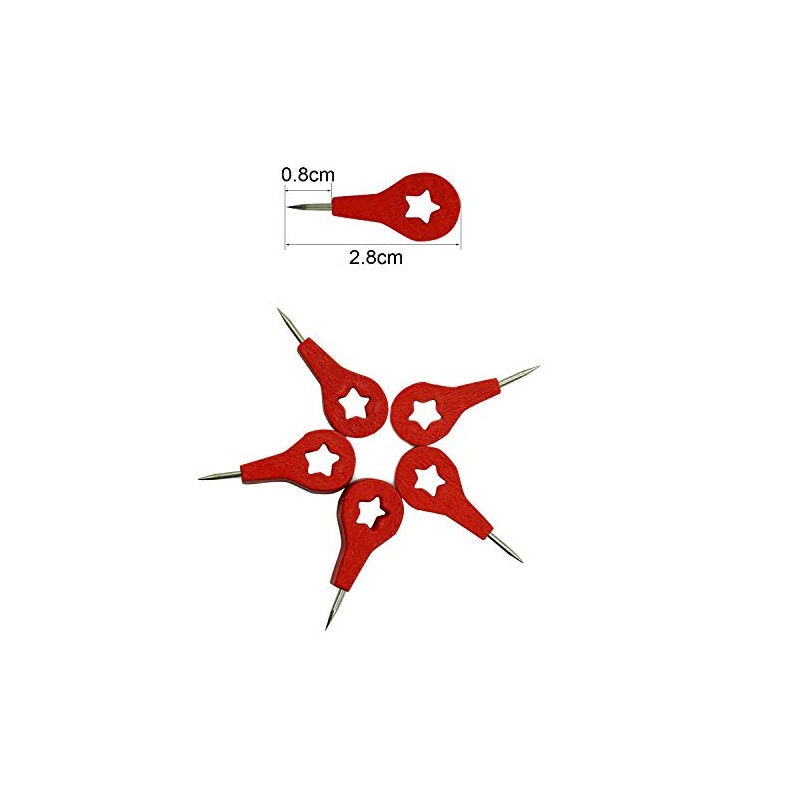 30 x Red Star Wooden Card Pins Dice Head Steel Tip Push Pins