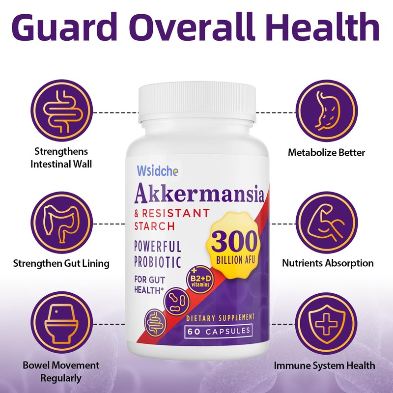 - 👍Aim to Digestive & Gut Health: Gut health is important in our overall health & well-being. Akkermansia Muciniphila, will protect gut lining, preventing it from getting irritated, helps break down fiber. Akkermansia is good for digestive system to handle food & metabolize nutrients better, pass stool easier and more regularly.