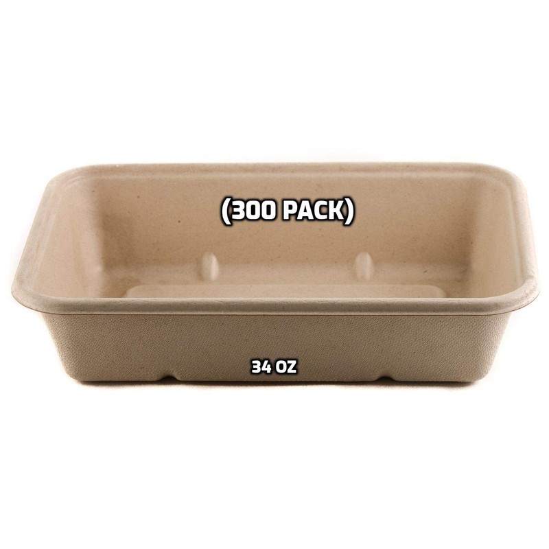[300 Pack] 34oz Compostable Eco Friendly Container Trays - Rectangular Oblong Tree Free Sugarcane Bagasse Meal Prep Bento Boxes Take Out Catering Microwavable Deep Container by EcoQuality