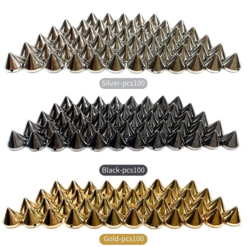 - Paquete: 300 remaches de cono de puntas plateadas con 3 colores, cada uno viene con 100 piezas.
