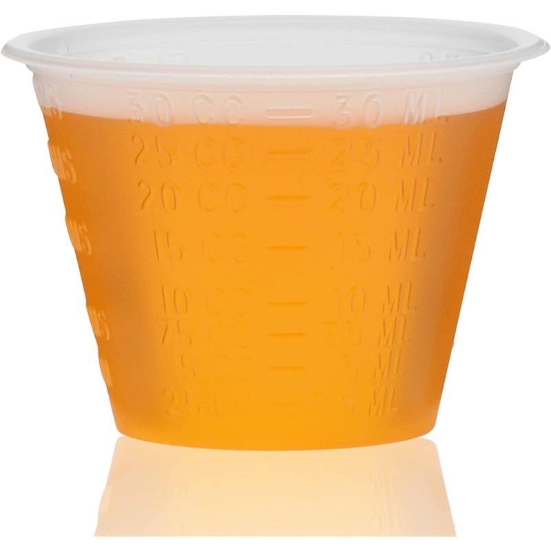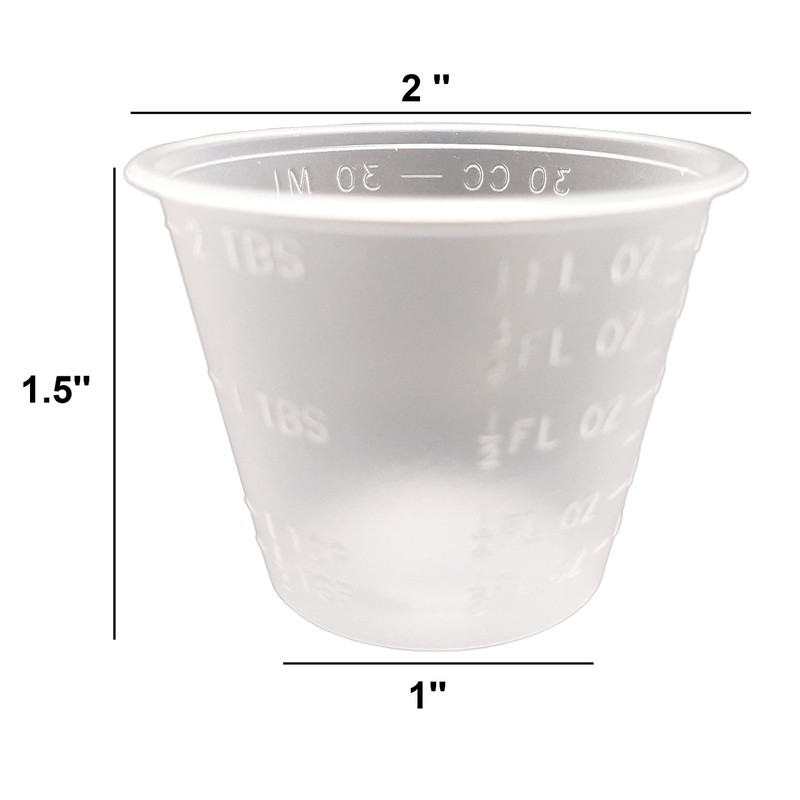 - TRANSLUCENT – These disposable 30ml measuring cups are made from clear transparent polypropylene plastic. Being transparent makes these small 1 oz shot cups easy to see through, allowing visualization of measured contents for exact and precise dose.