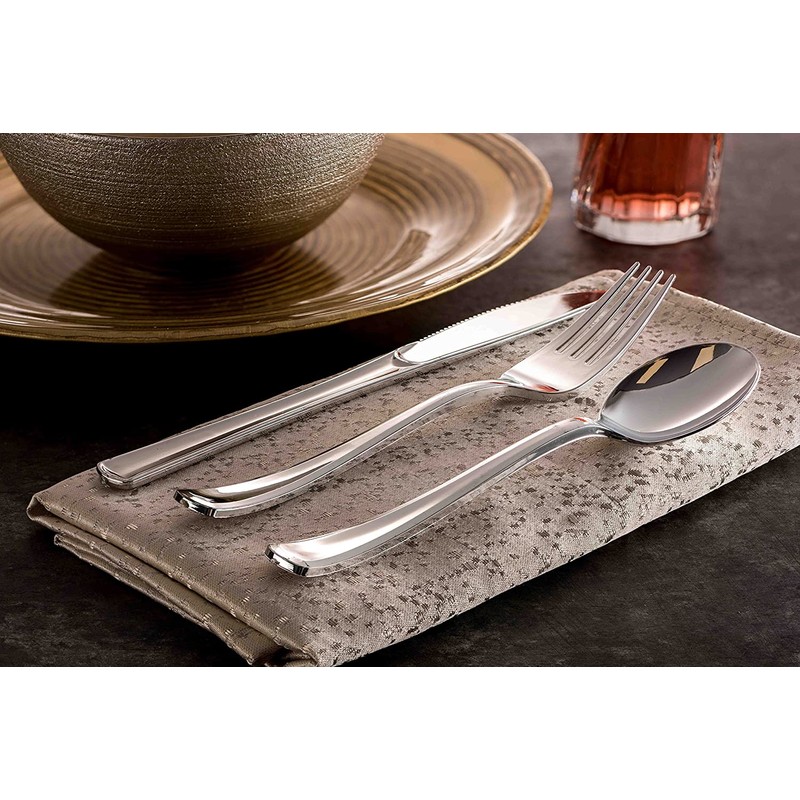 - JUST CLICK ADD TO CART NOW AND START YOUR PARTY!!: Like hosting but can't stand the mess? Well, now you are all covered! Enjoy spending time with your friends and family by simplifying it with TEPCO Setting silver plastic silverware solved problem!
