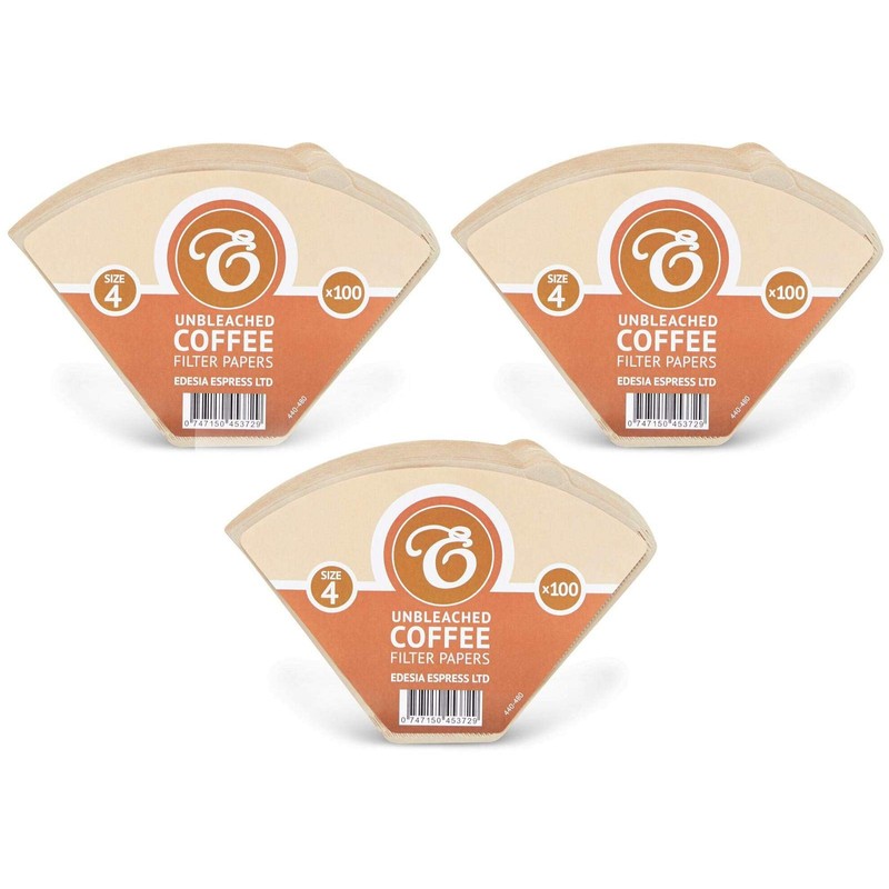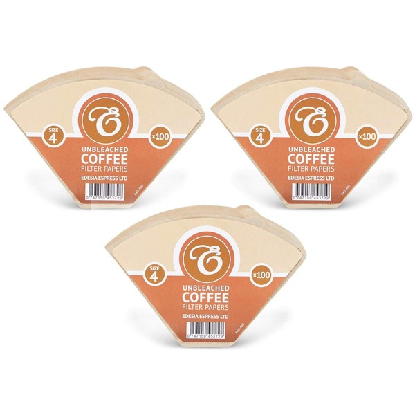 300 Size 4 Coffee Filter Paper Cones, Unbleached by EDESIA ESPRESS