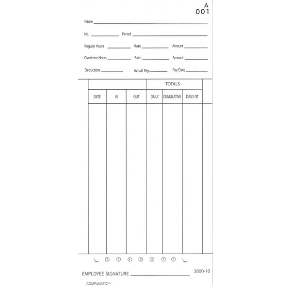 - Double-sided, use with weekly, bi-weekly, semi-monthly, or monthly pay periods. Cards numbered 1-50 with pre-punched holes.