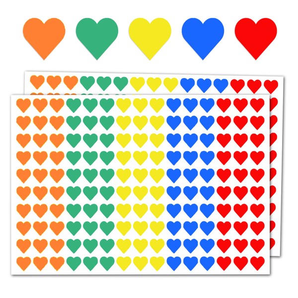 3000 Pieces - 0.5" Heart Stickers Labels, 5 Colors