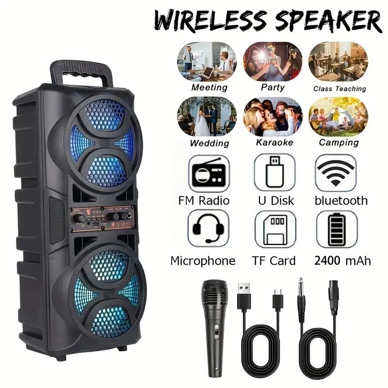 Long Battery Life & Rechargeable Battery: Equipped with 2400mAh rechargeable battery, the speaker can keep running up to 6 hours in events such as outdoor live performances, BBQ, advertising activities, street speeches, school events, karaoke, Bon festival dance, etc.