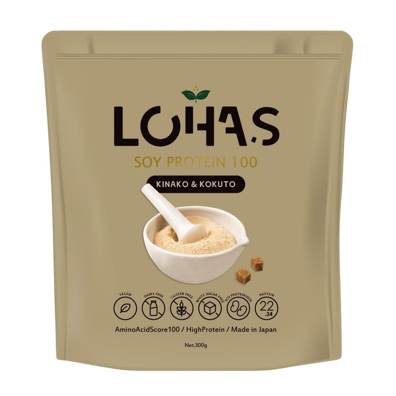ロハス ソイプロテイン (黒糖きなこ) 300g 人工甘味料不使用 化学合成原料不使用 低糖質 高タンパク 低脂質 植物性100% アミノ酸スコア100 たんぱく質含有量80%以上 国内製造