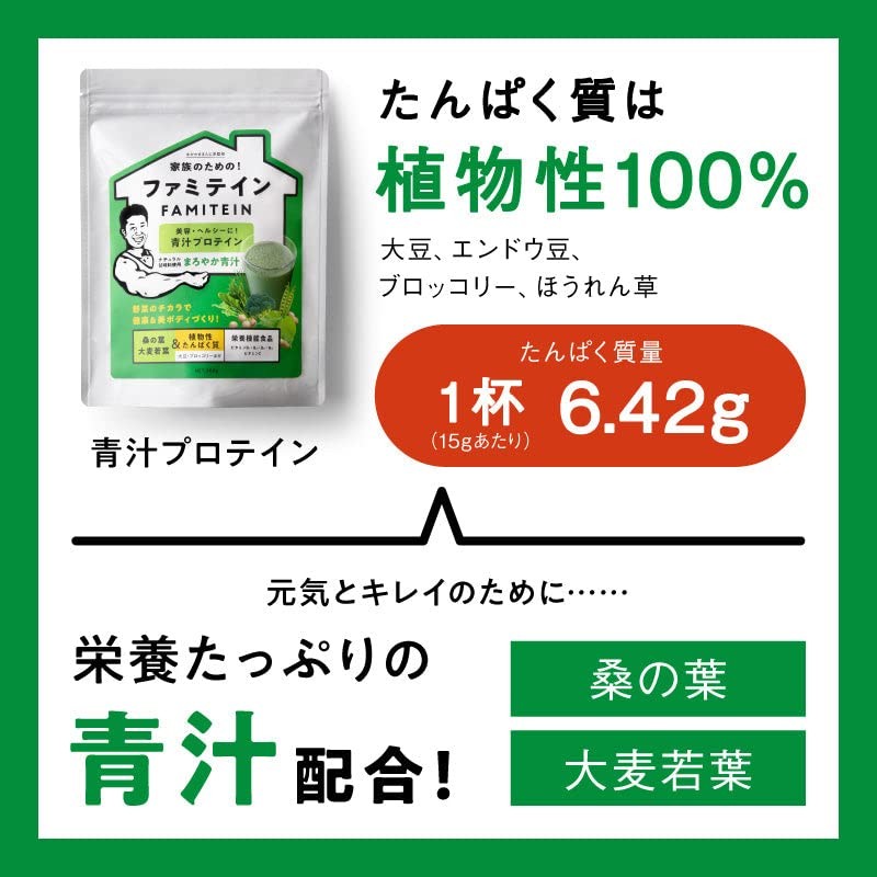 - 野菜由来の植物性プロテインが、すこやかで美しい体づくりをサポート。さらに青汁成分で、不足しがちな栄養もしっかり補給!なかやまきんに君プロデュース、家族みんなの健康を支える「青汁プロテイン」です。