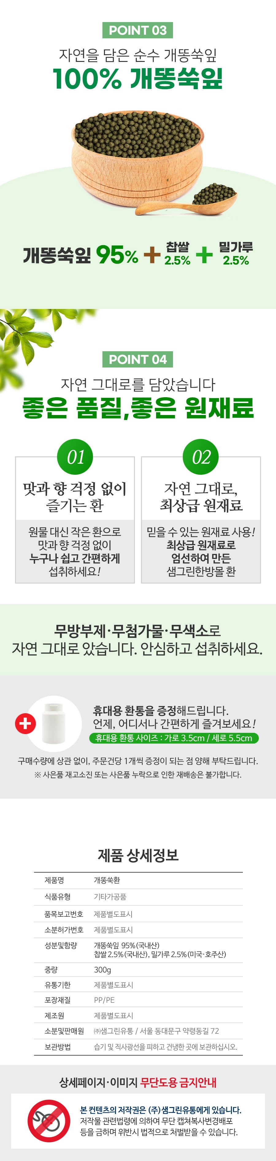 - Manufacturing Date, Expiry Date or Quality Maintenance Period: Manufacturing Date: Products will be shipped with more than 6 months remaining from the order date / Expiry Date: Up to 24 months from the manufacturing date, products will be shipped with more than 6 months remaining from the order date / For detailed expiry dates, please inquire at 02-966-2476 Samgreen Herbal Mall Customer Center / Expiry Date: Up to 24 months from the manufacturing date.