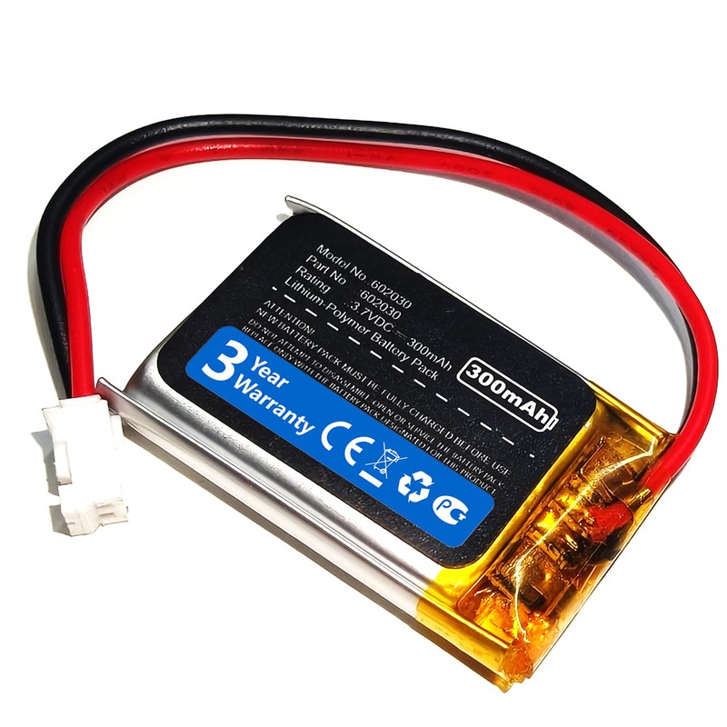 300mAh 3.7V 602030 LiPo Battery with 2 Wires PH2.0mm Connector 602030 High Temperature Resistant Rechargeable Battery for Bluetooth Headset Charging Compartment Point Reading Pen Fingerprint Lock
