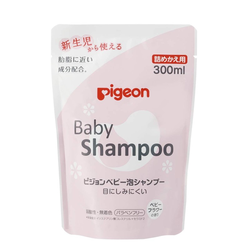 "Pigeon Foam Baby Shampoo Baby Flower Scent Refill 10.1 fl oz (300ml)" is a baby shampoo (refill) skincare product that takes special care in being gentle on baby's skin. For moisturizers, it uses Pigeon Baby Lipid, similar to the vernix (cholesterol instearate, ceramide 2). Low acidity to agree with a baby's skin. This shampoo won't run into eyes and has good defoaming. The gentle, sweet scent of baby flowers will make your baby's bath time enjoyable and comforting. The smooth, light foam completely removes dirt. Skin irritant tested by dermatologists. (Some users may still experience skin problems.) Mild acidity, dye free, paraben free Directions: Make sure you read "How to Refill the Bottle" before use.
