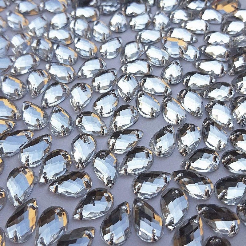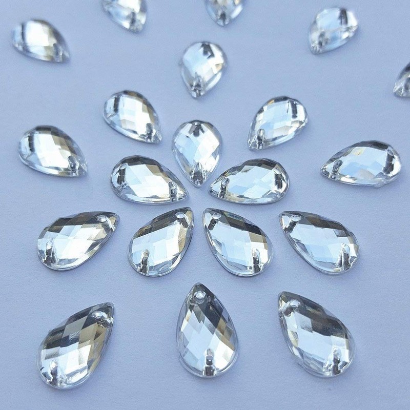 300Pcs 0.31x0.51″ Drop Shape Crystal Clear Acrylic Sew On Rhinestones Flatback Sewing Stones for Clothes Dress Crafts Garments Accessories (Silver)