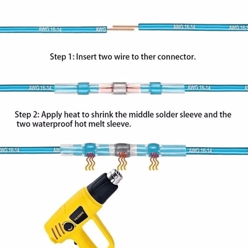 For the best crimping results, you can use a heat gun until the size of the product is reduced, the internal adhesive flows, and the gap inside the terminal is filled.