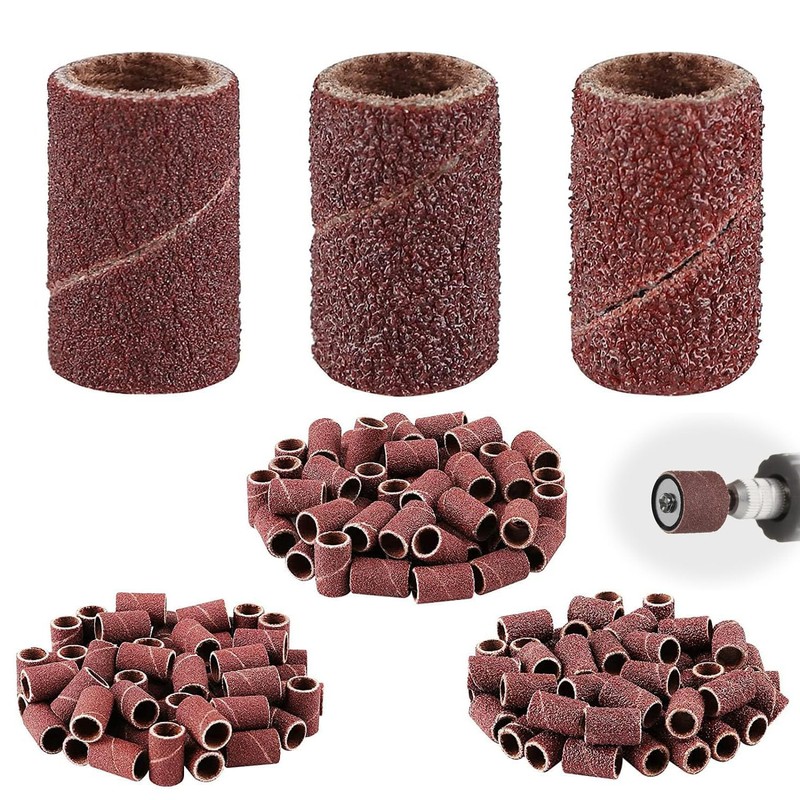 300Pcs Sanding Bands for Nail Drill, Brown Sanding Bands for Nail Drill Polishing Nail Cuticle Removal with 80# 120# 150 Grit for Professional Nail Salons DIY