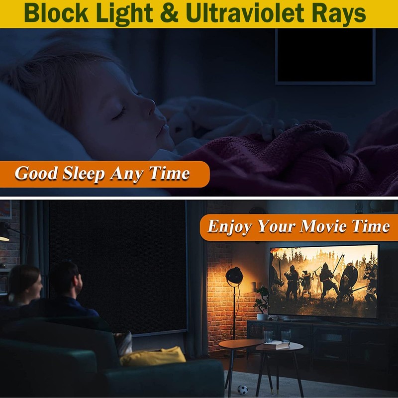 - PORTABLE: This blackout window film is wrinkle-resistant and leaves no marks after folding. You can fold the travel blackout blind and put it in the included storage bag for convenient storage in your suitcase. This black out curtains uk is made of eco-friendly blackout material, odorless and lightweight, making it very suitable for use in rental decoration, travel and vacation, etc