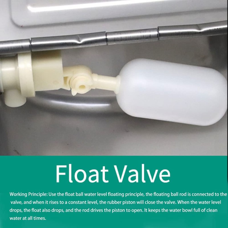 - -Working Principle :This automatic dog water dispenser is use the float ball water level floating principle, the floating ball rod is connected to the valve, and when it rises to a constant level, the rubber piston will close the valve. When the water level drops, the float also drops, and the rod drives the piston to open. It keeps the water bowl full of clean water at all times.