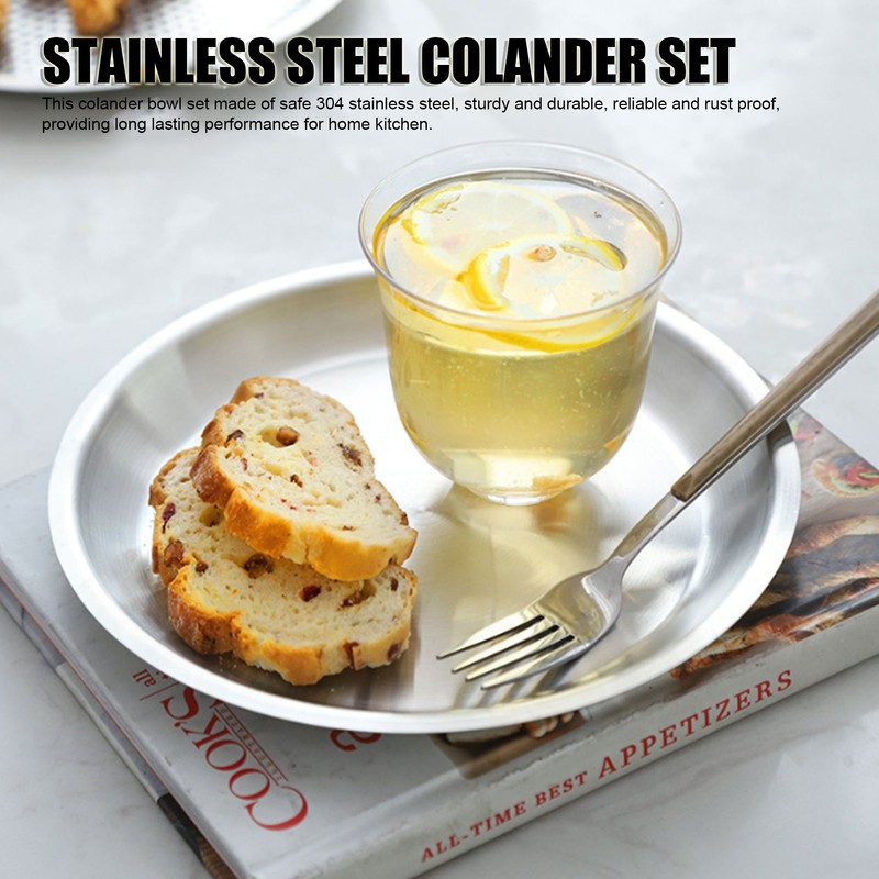 304 Stainless Steel Colander Bowl Set Large Capacity Versatile Stainless Steel Colander Bowl for Home Kitchen Hole Disk, Disk