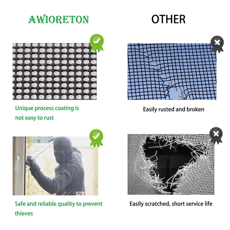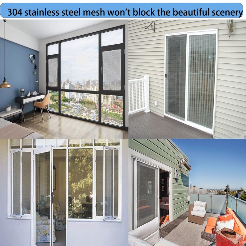 - Effective screen protection - The stainless steel door and window screen size is (120CM X 300CM). Heavy duty screen mesh has good light transmission and air permeability, which can effectively block the entry of mosquitoes and insects. Package includes 50pcs high strength quick tapping screws, the threads are very precise and clean, the deep and clear threads can easily penetrate the screens to ensure a firm fixing while not easy to deform and slide.