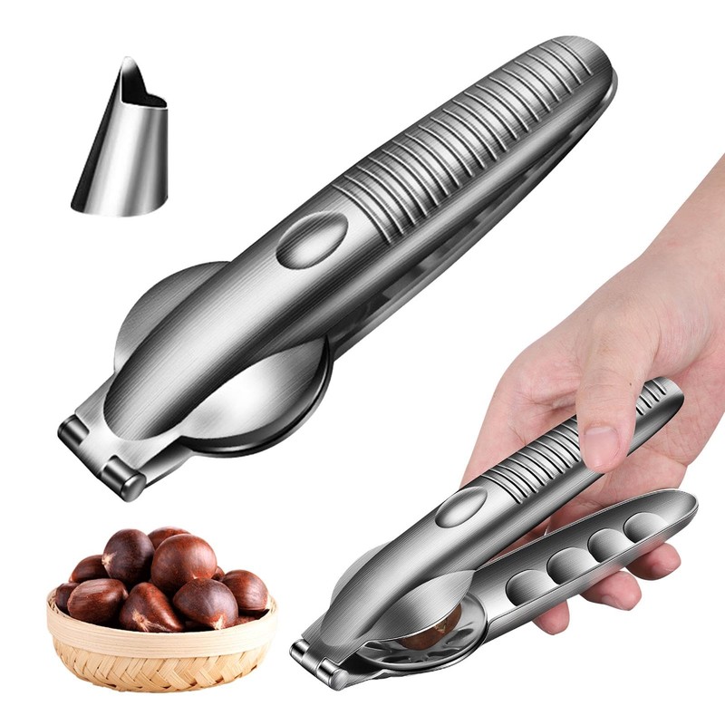 【DURABLE MATERIAL】Chestnut cracker is made of stainless steel, brushed surface. It is safe and heathy, heavy-duty, sturdy and very durable. They are not easily deformed or broken and can be used for long time.