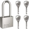 304 Stainless Steel Padlock 40 mm, Long Shackle Thickness 7 mm, Anti-Sawing and Rust Prevention, Padlock with 4 Keys for Locker, Garages, Garden Fences, Tool Boxes, Gym, Suitcase