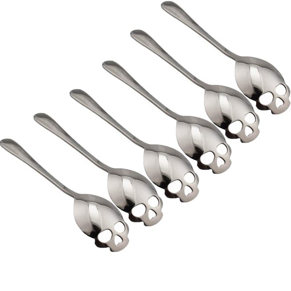 304 Stainless Steel Skull Sugar Spoon Dessert,Tea ,Coffee Stirring Spoon Set of 6 (Silver)