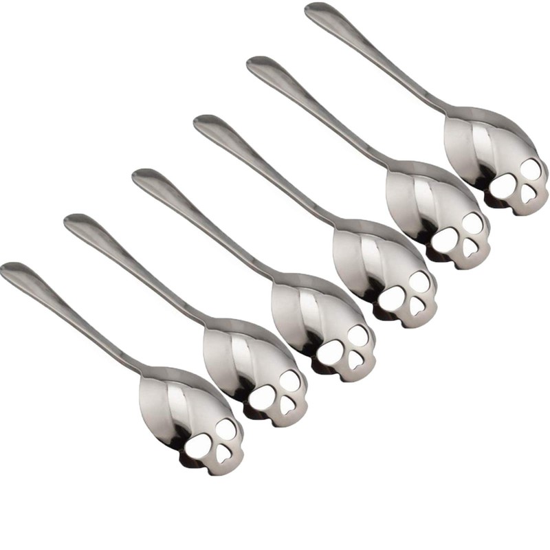 - Cool and stylish design, ideal gift for spoon collectors who are obsessed with skulls.The openings for eyes and nose make it easy to shake off excess sugar to curb your sugar consumption; Perfect for tea and coffee stirring; Can also be used as dessert spoon and absinthe spoon.