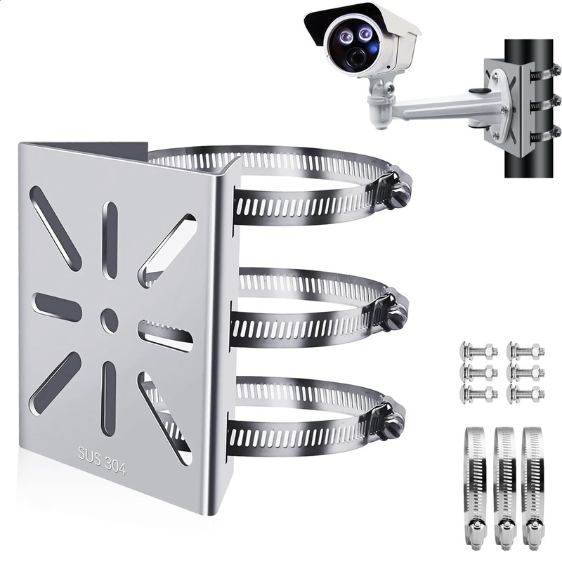 - 【High Quality 304 Stainless Steel】The security camera bracket is made of high quality 304 stainless steel material, with 304 screws and 304 steel fixing strap, rust resistant, corrosion resistant, sturdy and durable. The bracket is sturdy, not deformed, very suitable for outdoor use, ensuring that your camera is always mounted securely and securely on the bracket