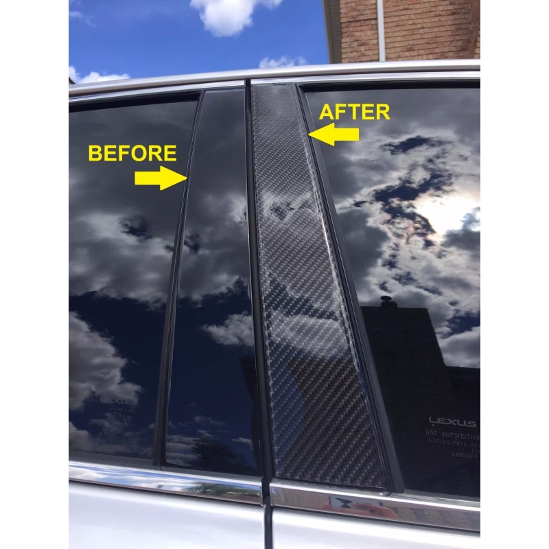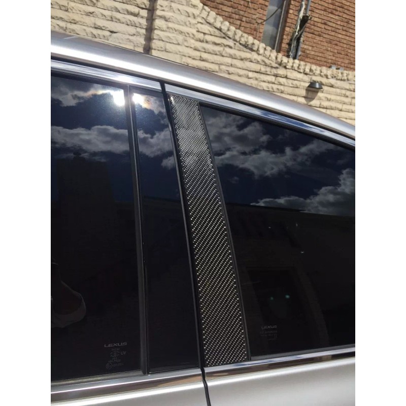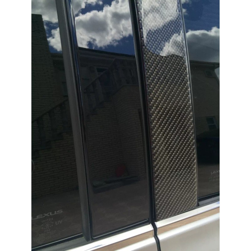 Looking to elevate the styling of your vehicle without anything too flashy? Our real carbon fiber pillar posts will help to enhance your factory pillar posts without adding too much to the vehicle. Each set of our real carbon fiber pillar posts install right over your existing pillars, simple peel and stick application. We also recommend using a hair dryer to heat up the double sided tape to ensure a tighter fit. Our real carbon pillars are made from real carbon fiber material and finished with a urethane clear coat giving them a beautiful shiny and smooth surface. Now you can upgrade your dull finish factory pillar posts to a carbon fiber style at a fraction of the cost to replace them. Our carbon fiber pillar posts are laser cut to fit your exact make, model and year which ensures a perfect fit and edges every time. We offer a lifetime warranty on our carbon fiber pillar posts which covers cracking, peeling and yellowing. We recommend cleaning the pillars with a soft cloth to prevent any scratching/scuffing. All of our real carbon fiber pillar posts come with full double sided tape on the back ensuring a strong and tight hold. Now you can heighten the appearance of your vehicle giving it a more sporty style at an affordable price. Please review all photos of product before purchasing to ensure you are getting the correct product. Some additional features of our real carbon fiber pillar posts include: