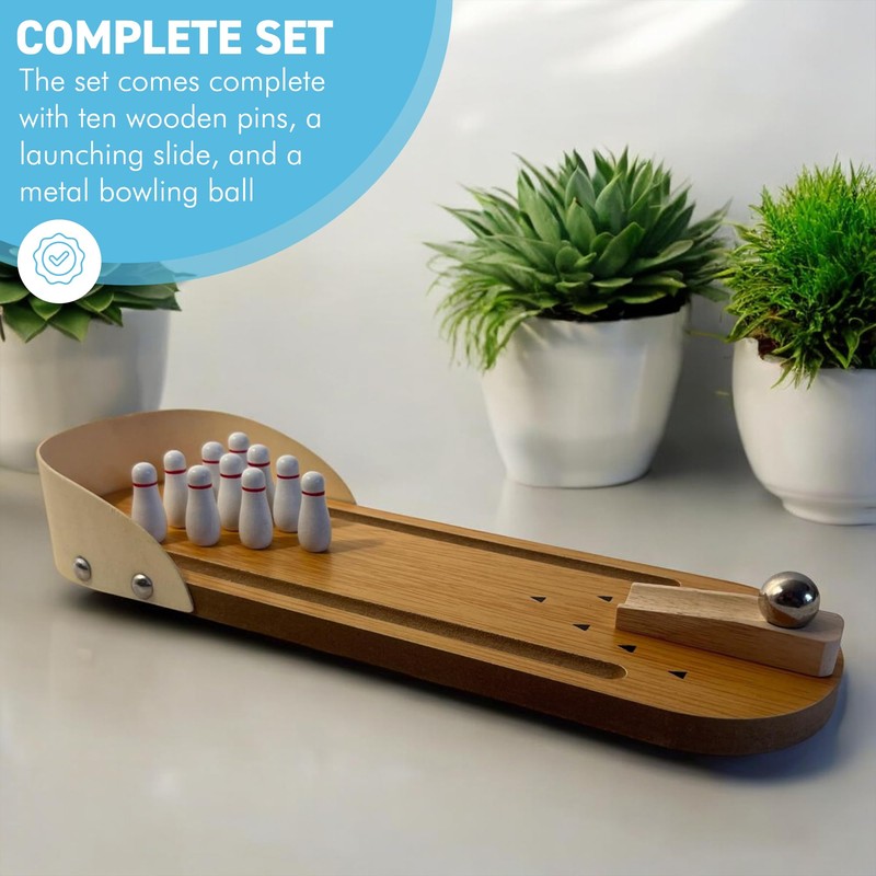 - CLASSIC DESIGN: Enjoy the charm of a wooden desktop bowling game that brings the excitement of bowling right to your table. This tabletop bowling game is perfect for any setting, offering a fun and engaging way to spend time with friends and family.
