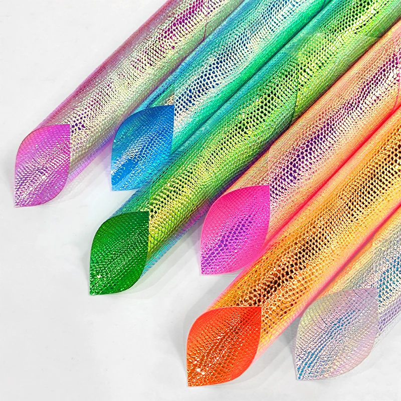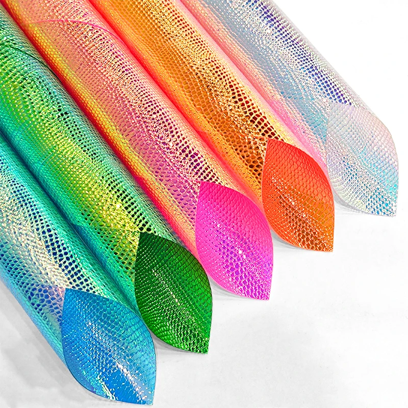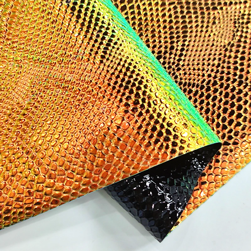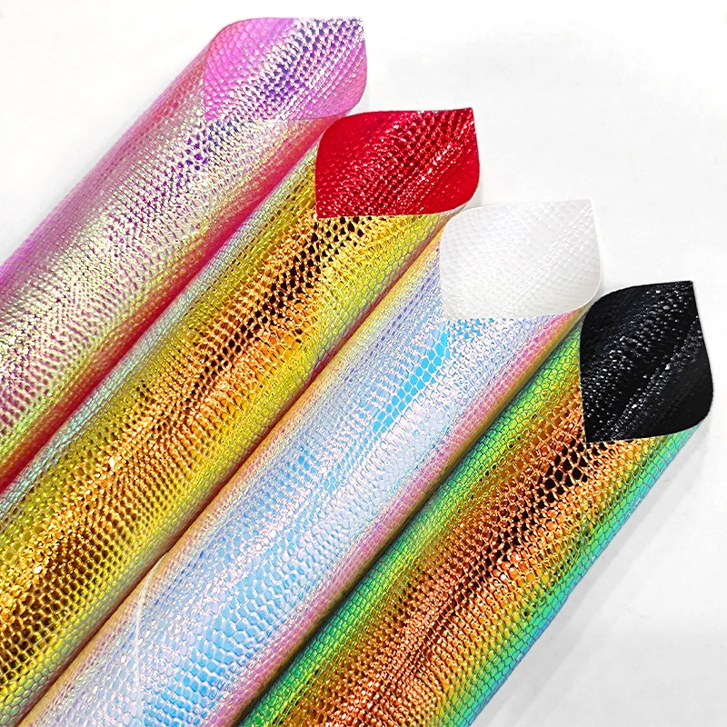 30cmx135cm Roll Holographic Lizard Pattern Faux Leather Leatherette Fabric Synthetic Leather for Making Bag Shoes CraftsColor: XHT-8504-4