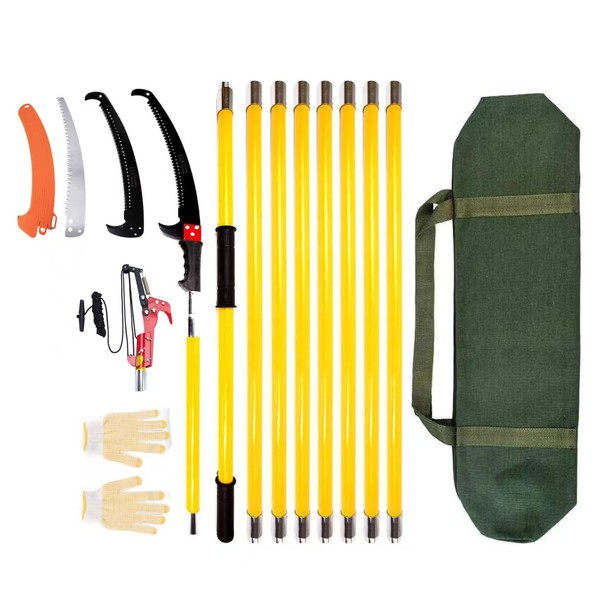 - 【Easy to install & safe and reliable】30 feet Trimmer pole saw includes 1 head rod and 8 thickened epoxy rod; The length can be adjusted as required. Once installed, you can trim even tall trees easily without climbing a ladder, and you can trim them on the ground without bending down or kneeling. It will be easier and safer to prune trees and shrubs this way.