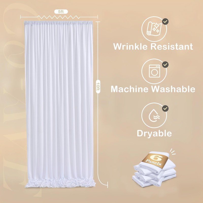 - Package: 6 Panels 5ftx10ft White Curtains Backdrop for Parties. Totally 30FT(Width) x 10FT(Height). cortinas para fiestas decoracion.