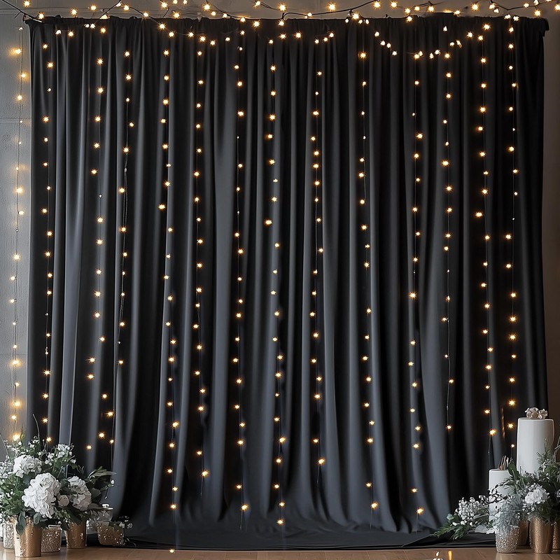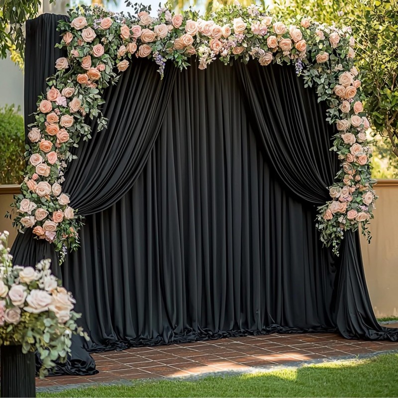 - Wrinkle Free 14Foot Long Black Fabric Curtain: This wedding backdrop for reception is made of wrinkle free material, known for its soft and silky texture, which will give you an extraordinary feeling of touch. The backdrop is exquisitely sewn, smooth and durable fpolyester with natural drape, add more elegance and romance to your weddings.