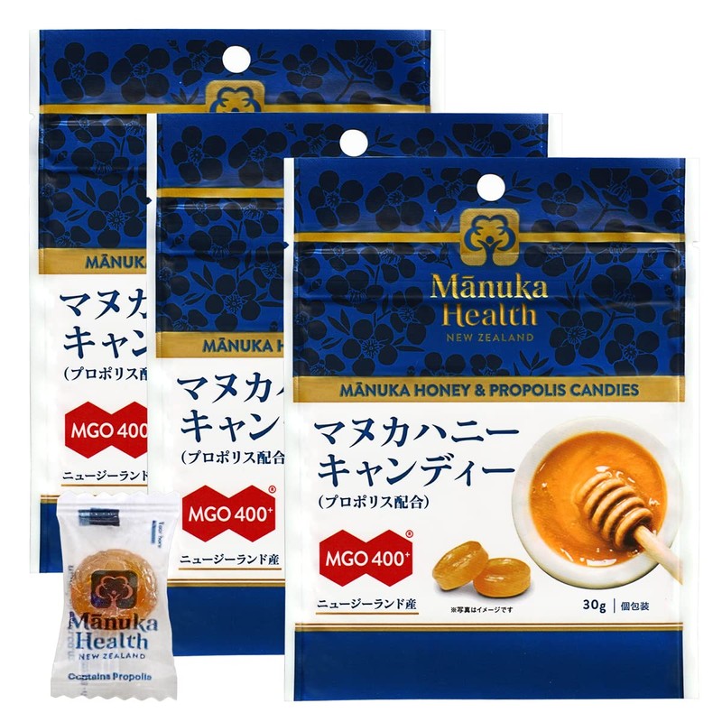 マヌカヘルス マヌカハニー キャンディー ( プロポリス 配合 ) 30g × 3袋 [ 正規品 ニュージーランド産 MGO400+ 個包装 チャック付き ]