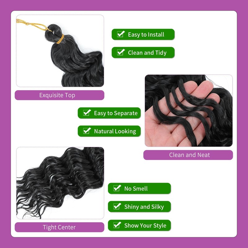 - 【Ocean Wavy Braids Hair Material】Deep wavy braids hair is made of 100% high-quality synthetic fiber, smooth, soft.