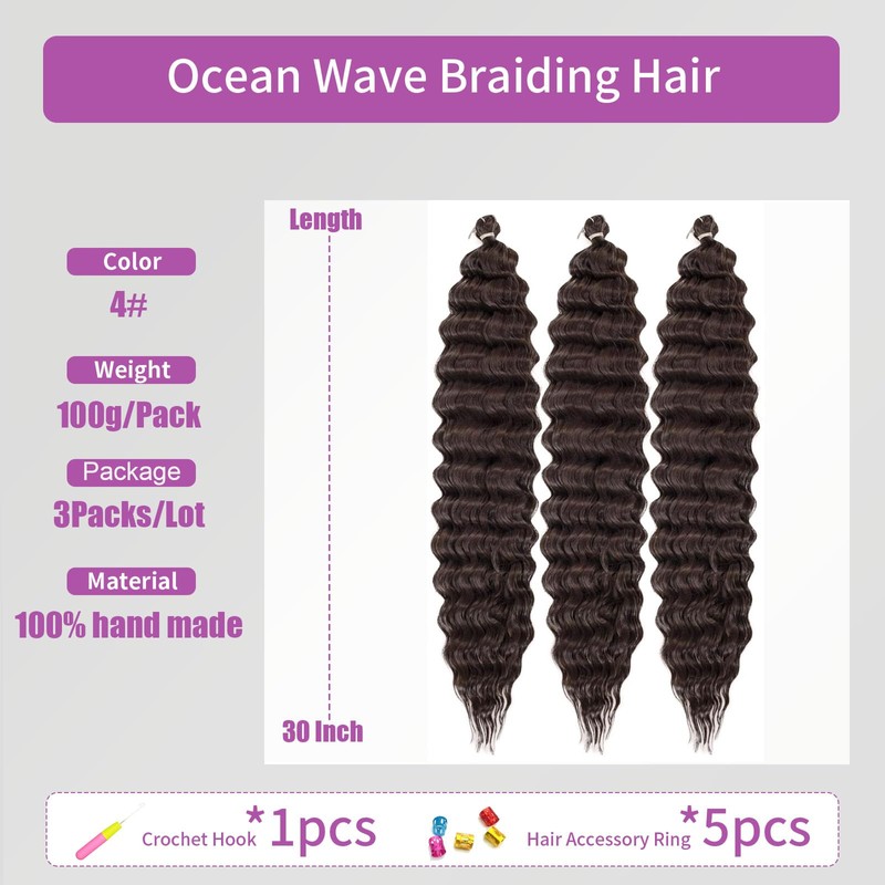 30Inch Ocean Wave Crochet Hair 3Packs Deep Wave Braiding Hair Curl Crochet Braiding Hair Extension Ocean Wave Braids Hair for women (4#, 30Inch)